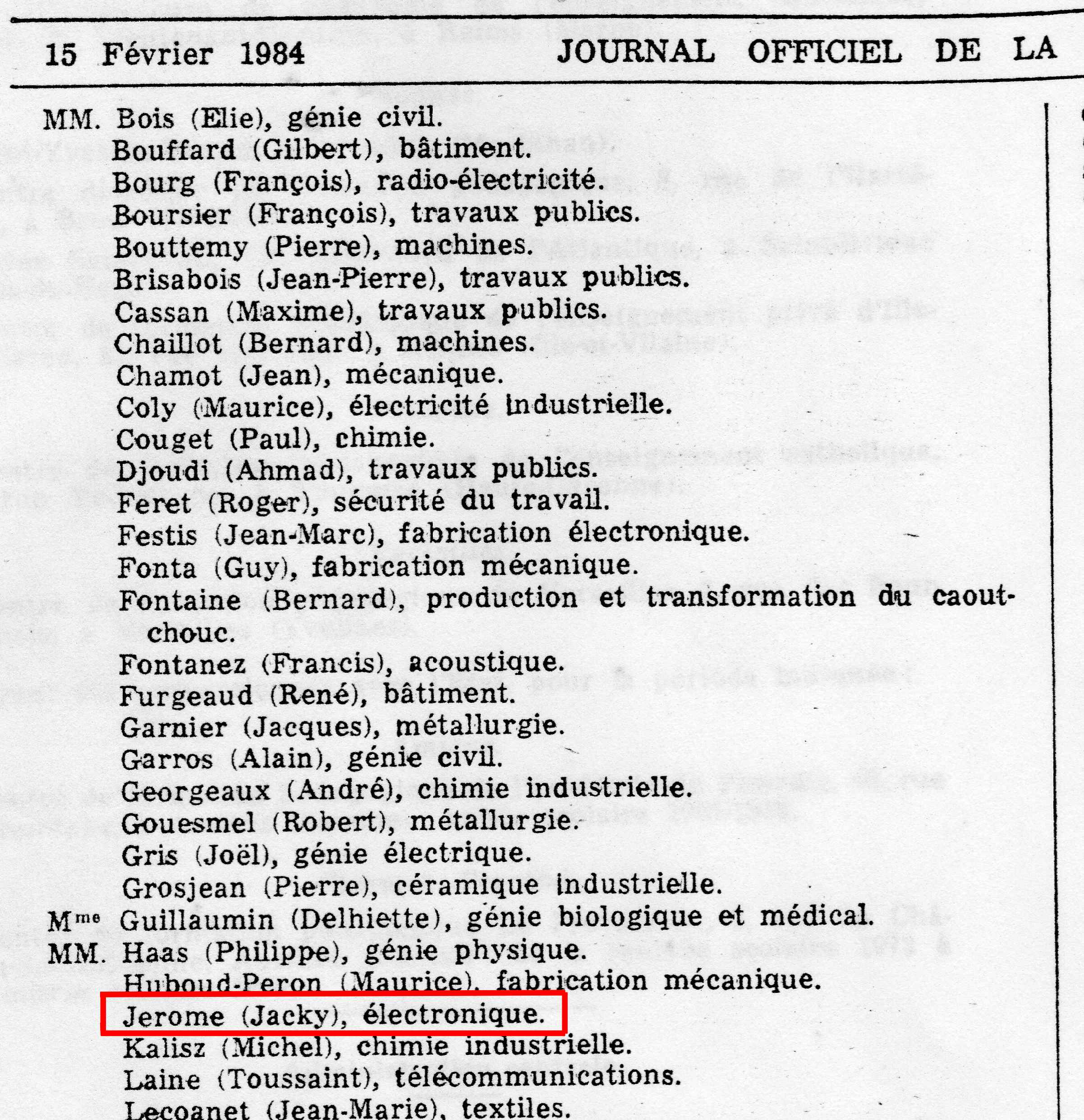 Diplôme d'Etat : Parution au Journal Officiel, No. 39, 116ème année, page 1584/5, du 15-02-84